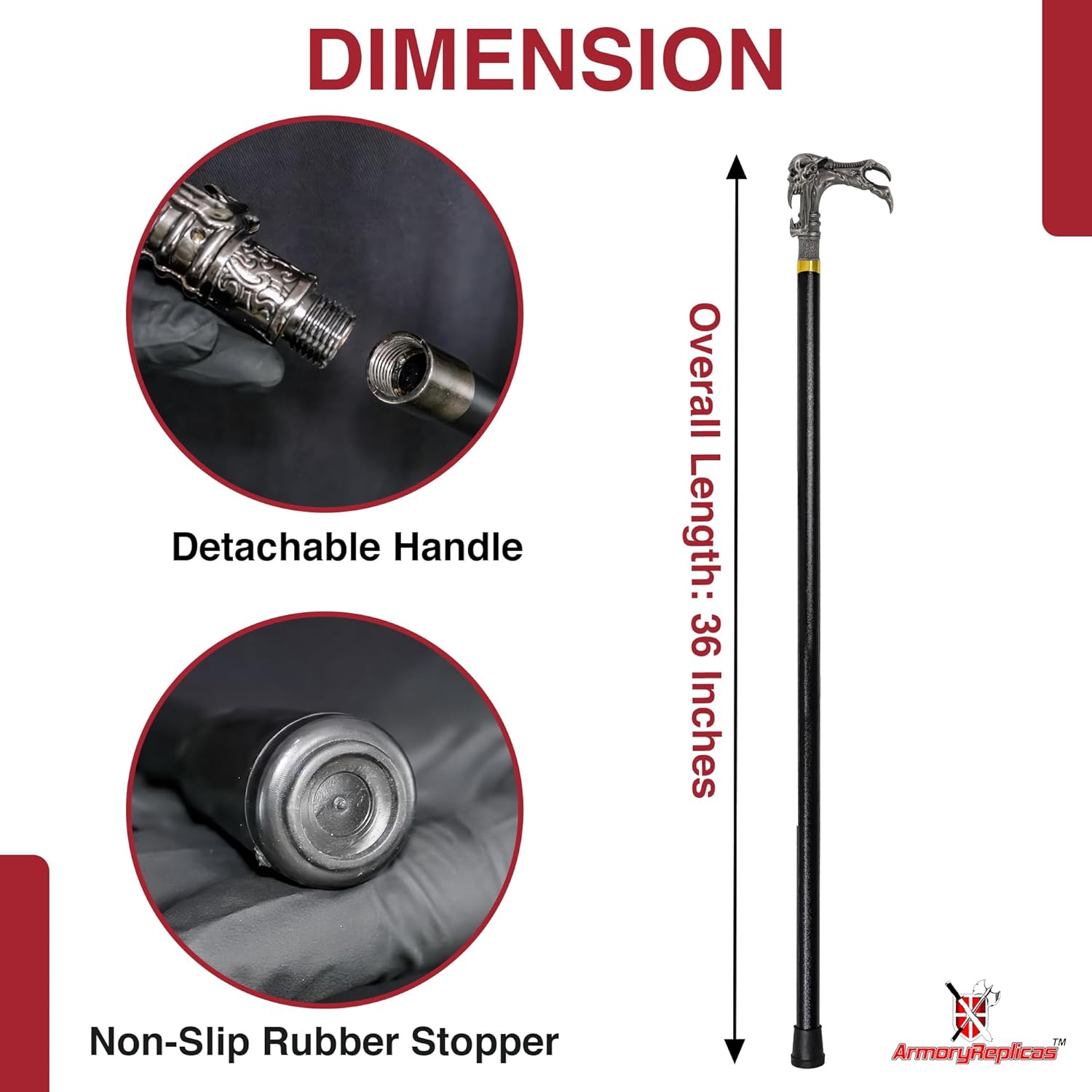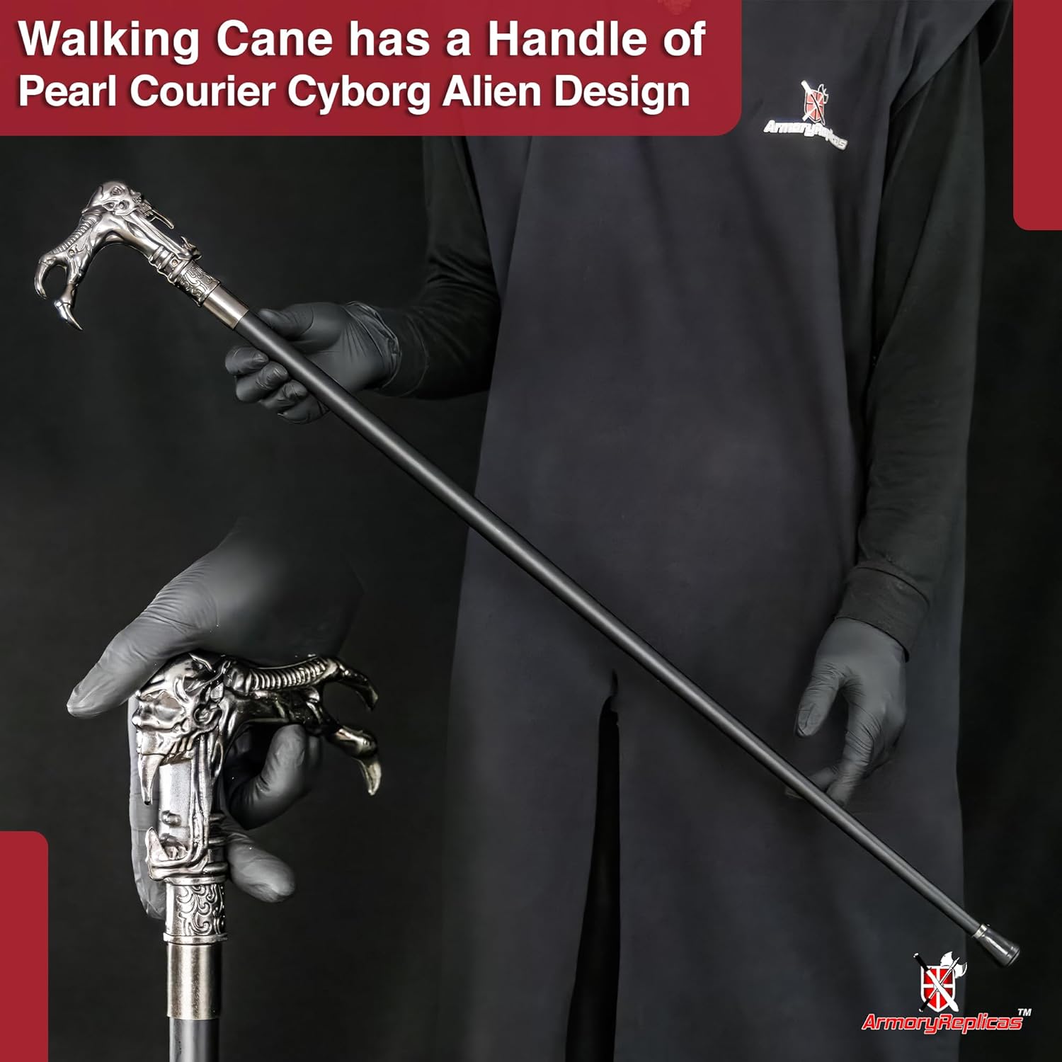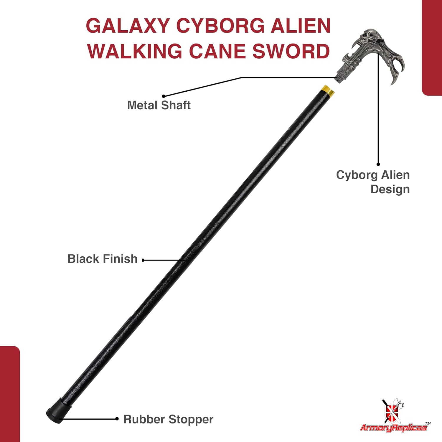 Armory Replicas™ Galaxy Cyborg Alien Walking Cane – Futuristic Mechanical Design with Stainless Steel Shaft, Alien Head Handle, and Rubberized Tip for Balance – Stylish & Durable Walking Aid
