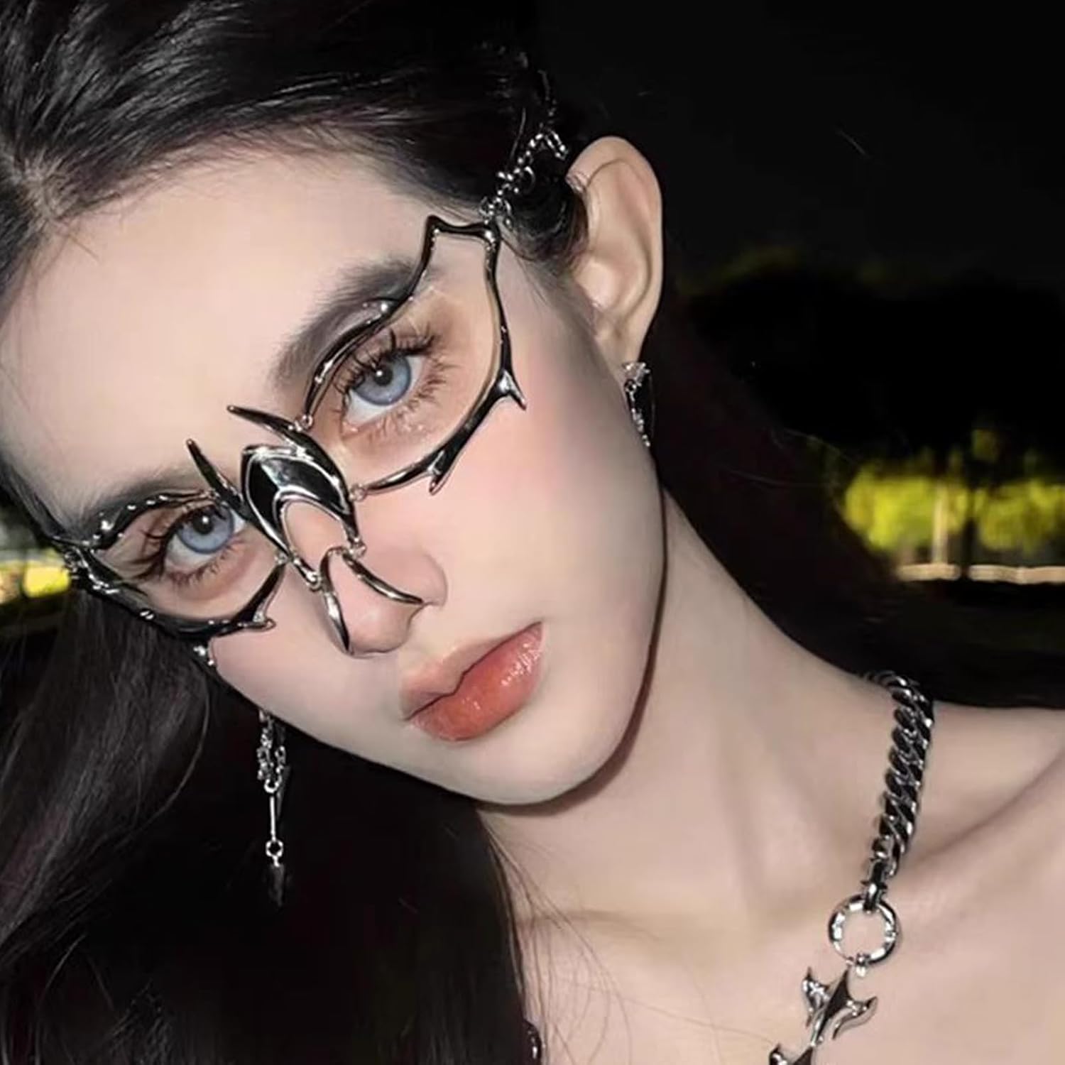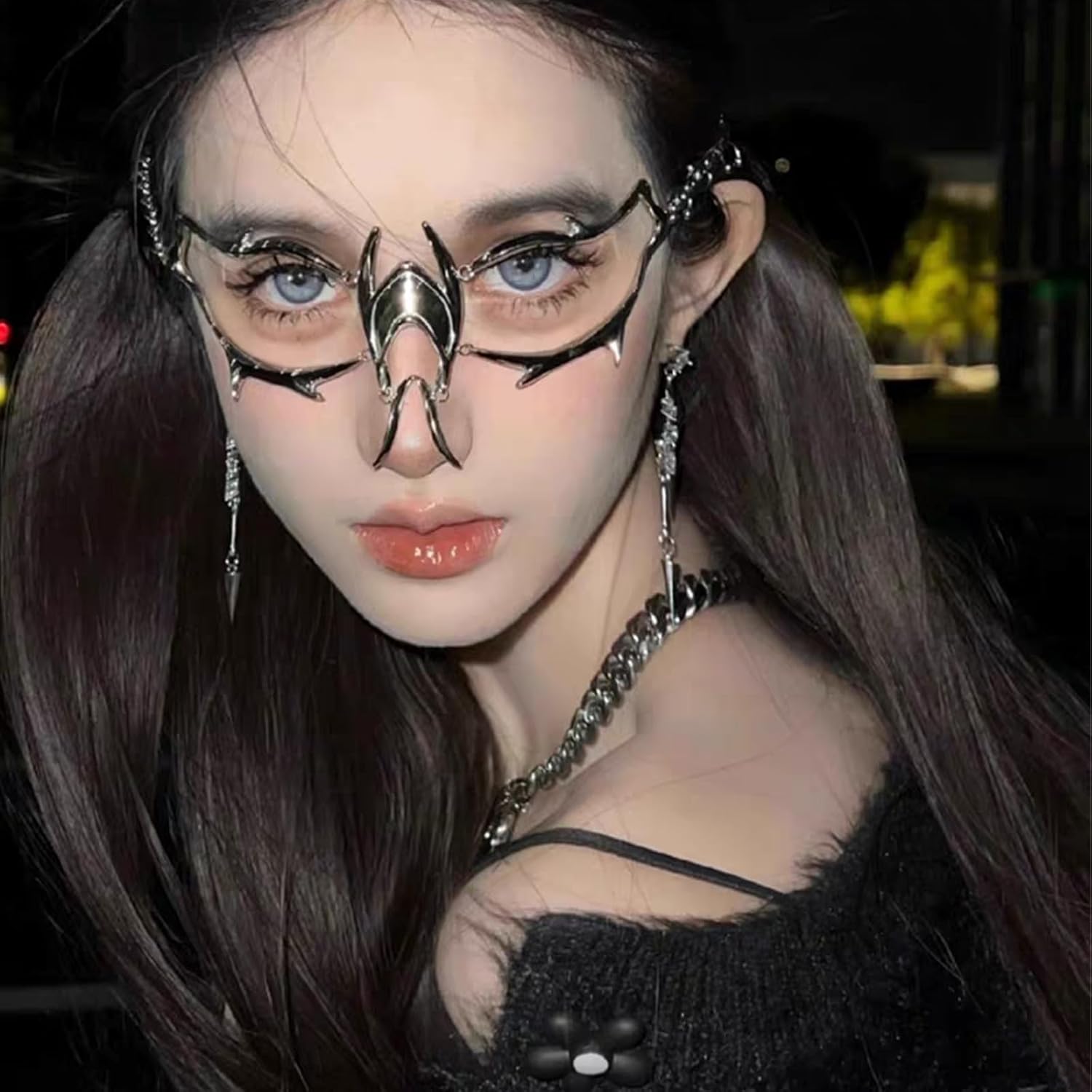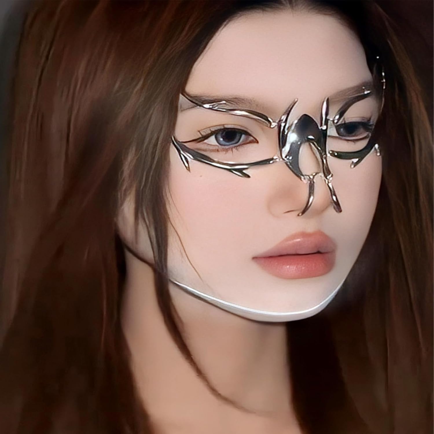 FEHEOO Cyber Punk Alloy Alien Face Accessories Futuristic Cyberpunk Stainless Steel Face Mask with Spiked Chain Accessories quantity