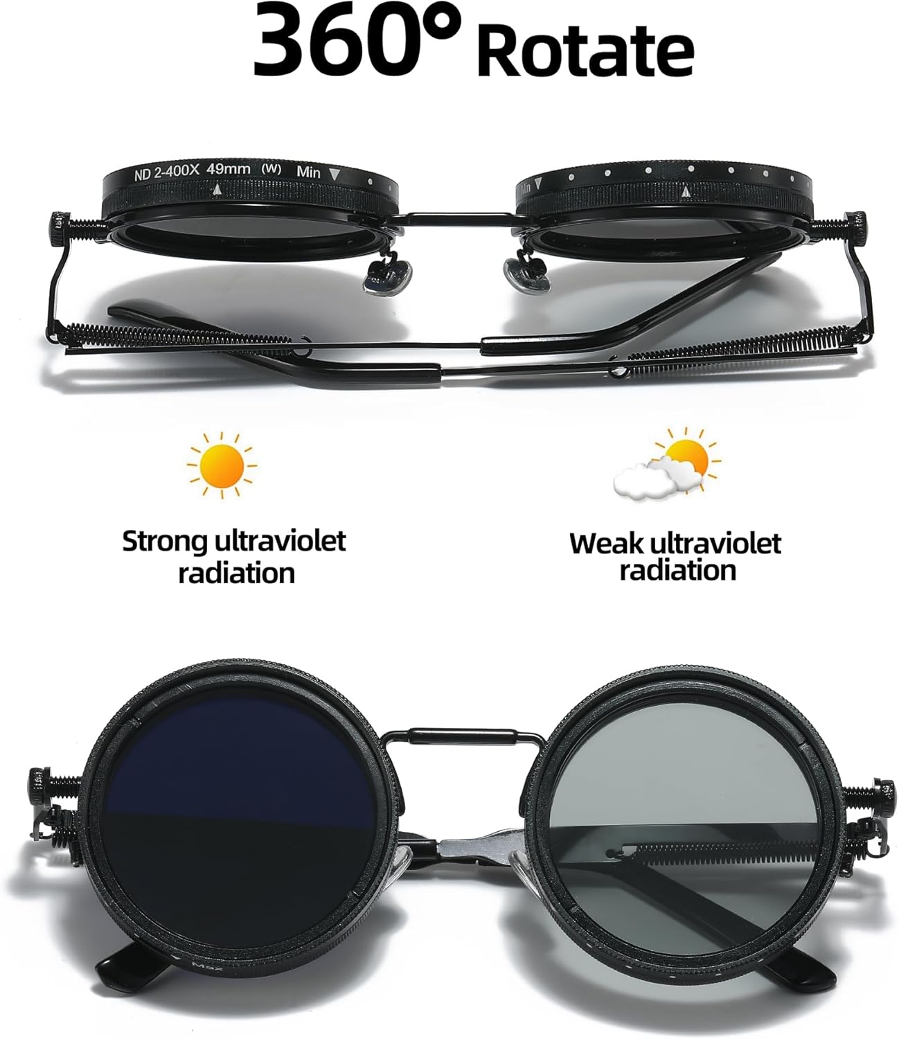 JOLLYNOVA Adjustable Tint Sunglasses, 1-9 Gears Steampunk Retro Metal Round Polarized Glasses with ND Filter Lenses