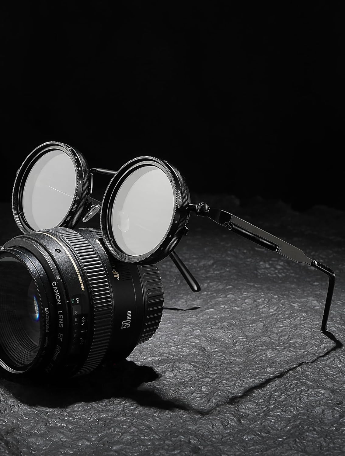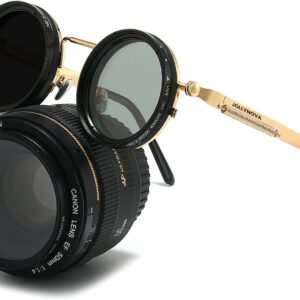 JOLLYNOVA Adjustable Tint Sunglasses, 1-9 Gears Steampunk Retro Metal Round Polarized Glasses with ND Filter Lenses
