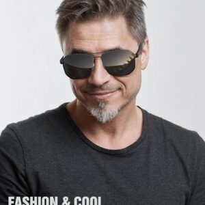 LUENX Aviator Sunglasses for Men Square Polarized Polygon Lens - UV 400 Protection with Accessories 61MM Driving Outdoor quantity
