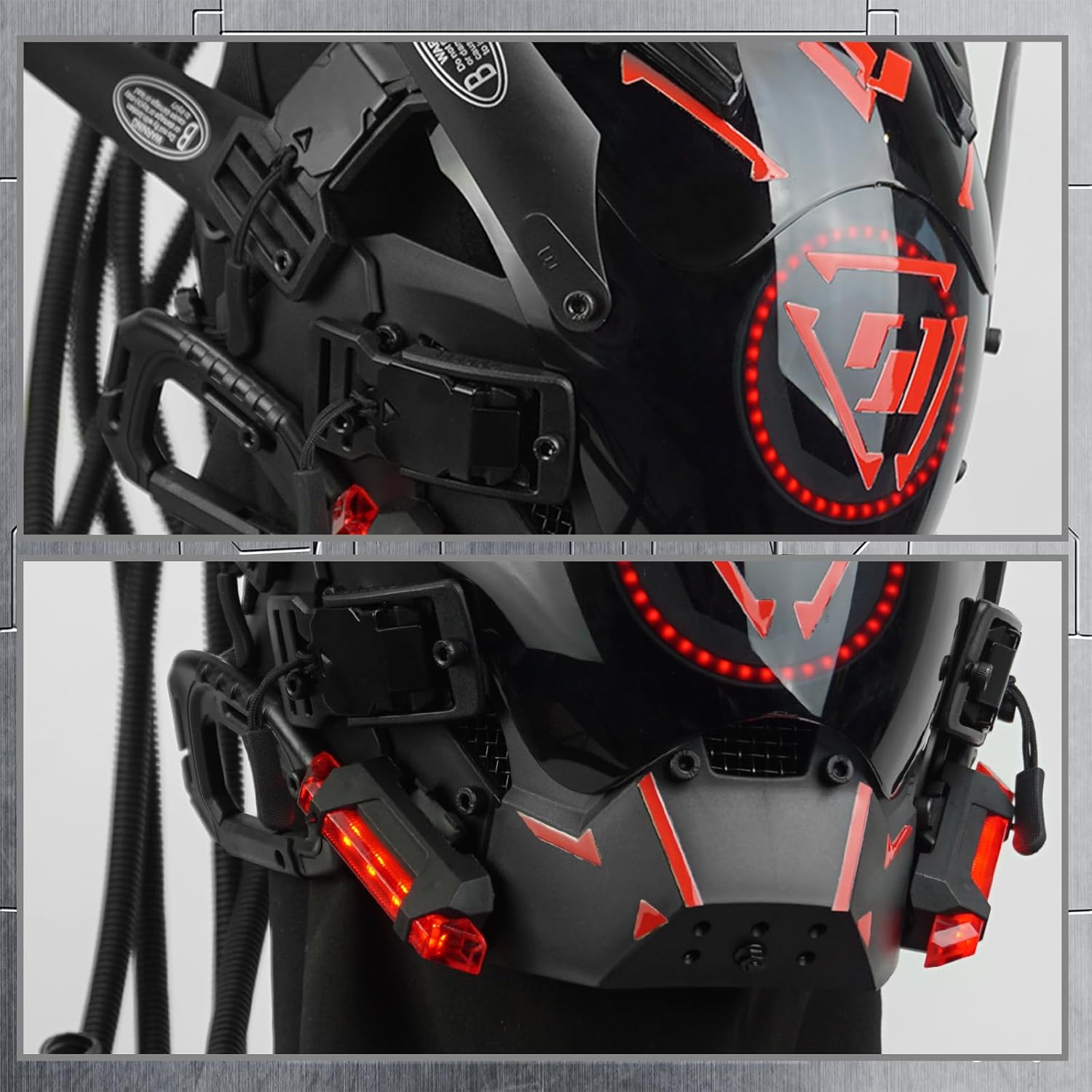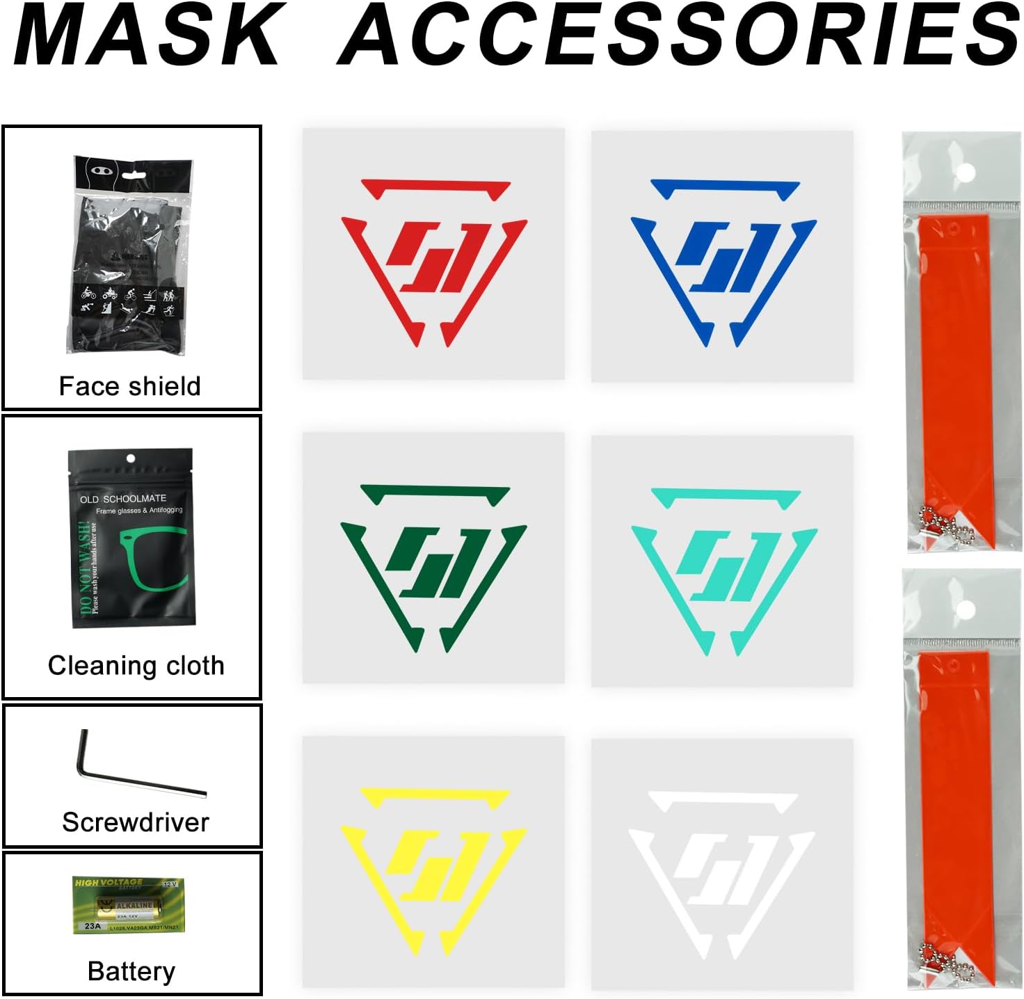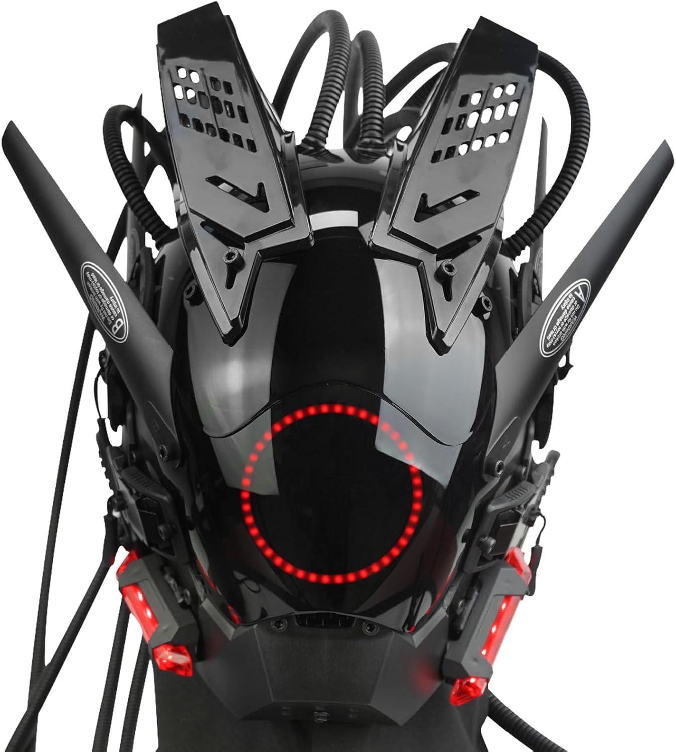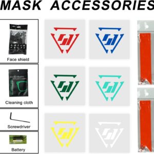 Punk Helmet Mask Round Light LED Light with Braids, 6 Punk Stickers, Futuristic Mask for Cosplay, Music Festival, Halloween quantity