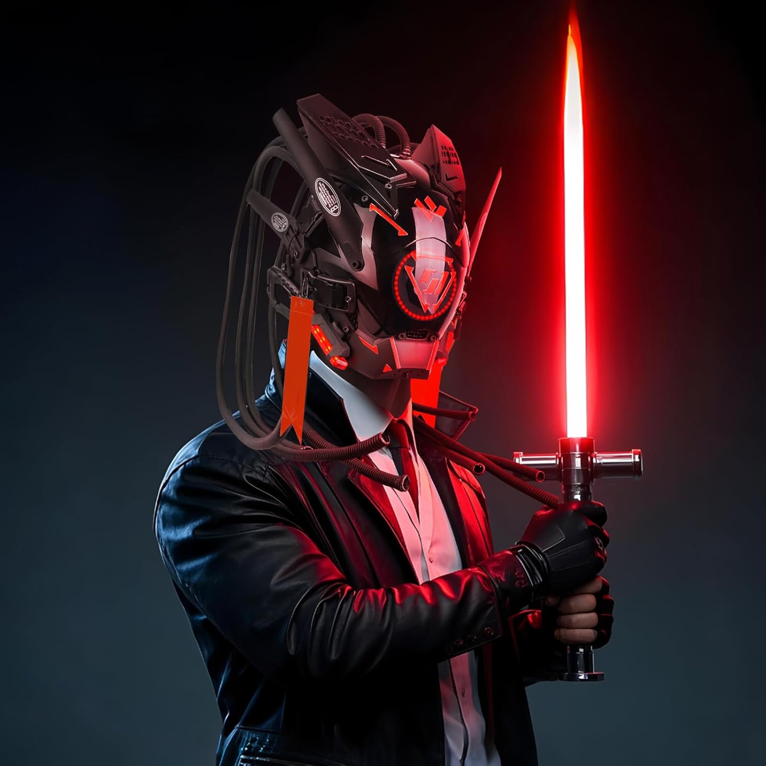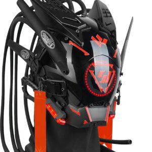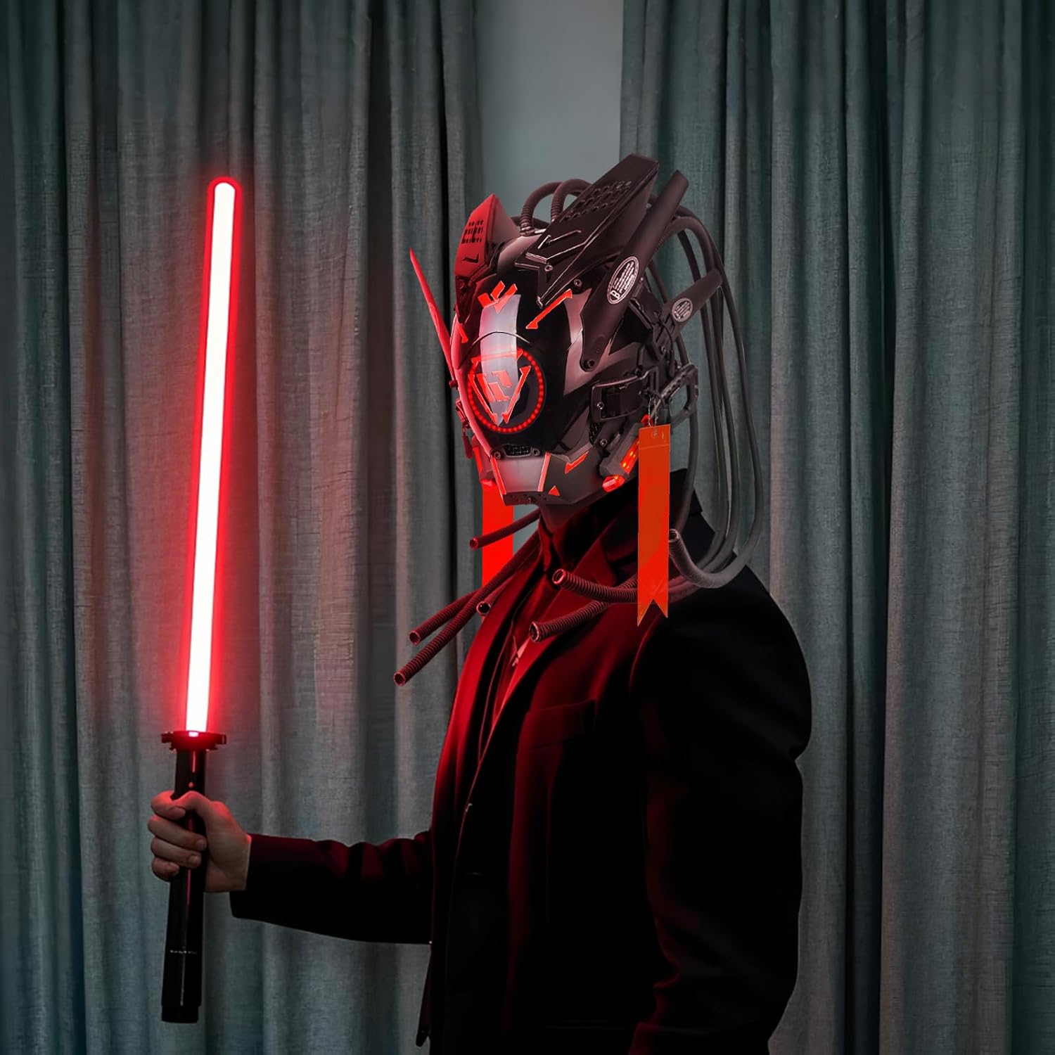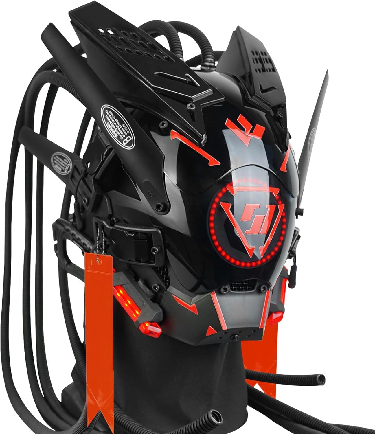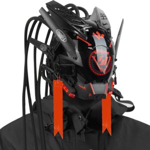 Punk Helmet Mask Round Light LED Light with Braids, 6 Punk Stickers, Futuristic Mask for Cosplay, Music Festival, Halloween quantity